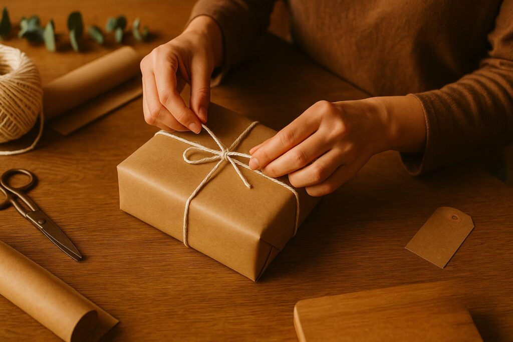 - Beli kertas kado kraft atau linen di Toko Maju, 5 lembar cuma 12 ribu.