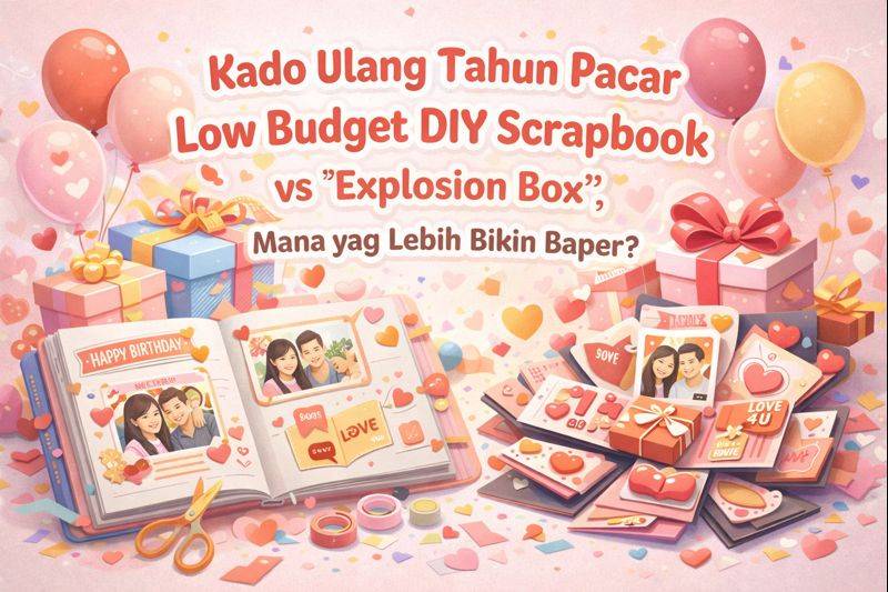 Uang bulanan menipis tapi ulang tahun pacar tinggal hitungan hari? Tenang, kamu nggak sendiri. Kali ini kita bedah dua jagoan DIY: scrapbook nostalgia vs explosion box surprise—siapa yang lebih jago bikin baper?
