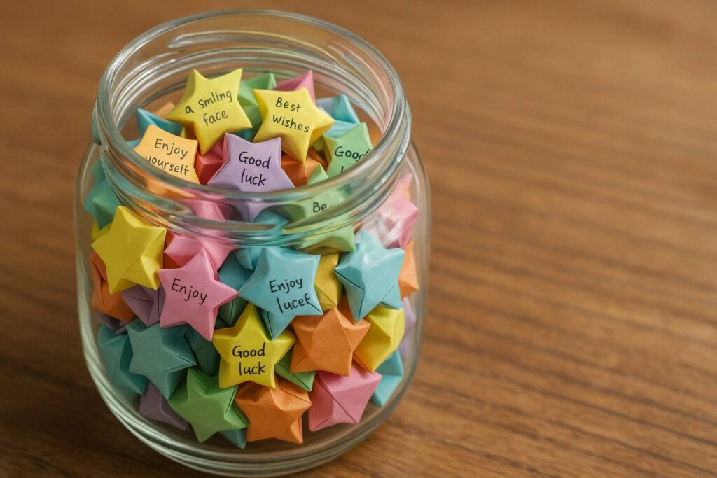 - Jar of Memories: Ambil toples kaca bekas (bisa dari selai). Minta setiap teman sekelas tulis satu kenangan paling berkesan dengan guru di kertas kecil (5×5 cm). Lipat jadi origami bintang atau hati. Isi toples penuh. Biaya: Harga kertas origami Rp 10.000 + toples bekas = hampir gratis.